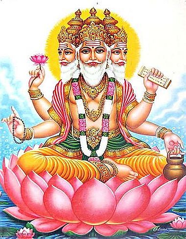 Shri Brahmadeva est le démiurge, c’est-à-dire que c’est l’aspect de Dieu qui crée. Il a créé l’univers, il a créé les galaxies, la matière, le monde tel que nous le connaissons. Il fournit l’appareil physique et mental, le cadre matériel grâce auquel l’évolution se produit. L’énergie de Brahmadeva est celle du côté droit. C’est celle qui culmine aussi dans l’ égo. C’est l’égo primordial, Celui qui existe.