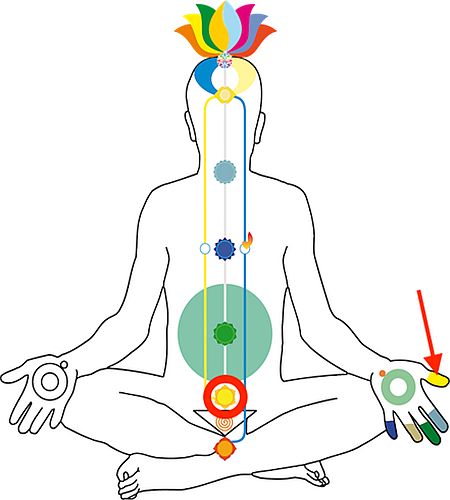- Placer la main gauche vers la photo, et la main droite sur le chakra pour donner des vibrations.