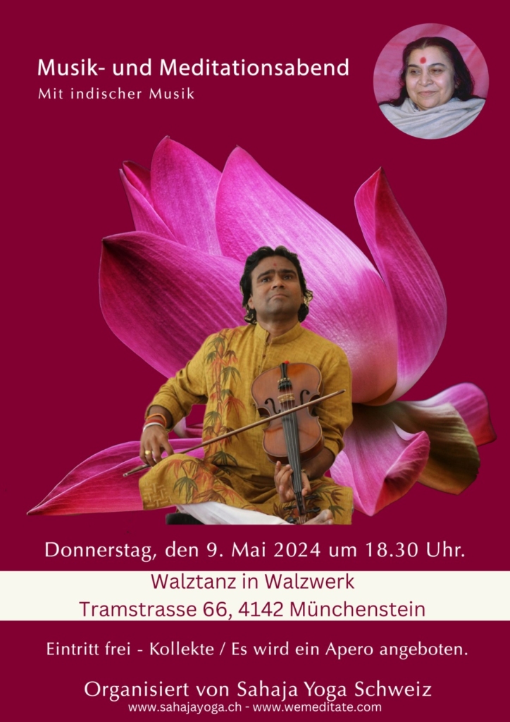 Milind Dalal – ein professioneller Musiker aus Indien, der derzeit durch Europa tourt – wird unsere Ohren mit tiefer und beruhigender Musik erfreuen, während wir durch die Sahaja Yoga-Methode in einen Zustand echter Meditation eintreten.