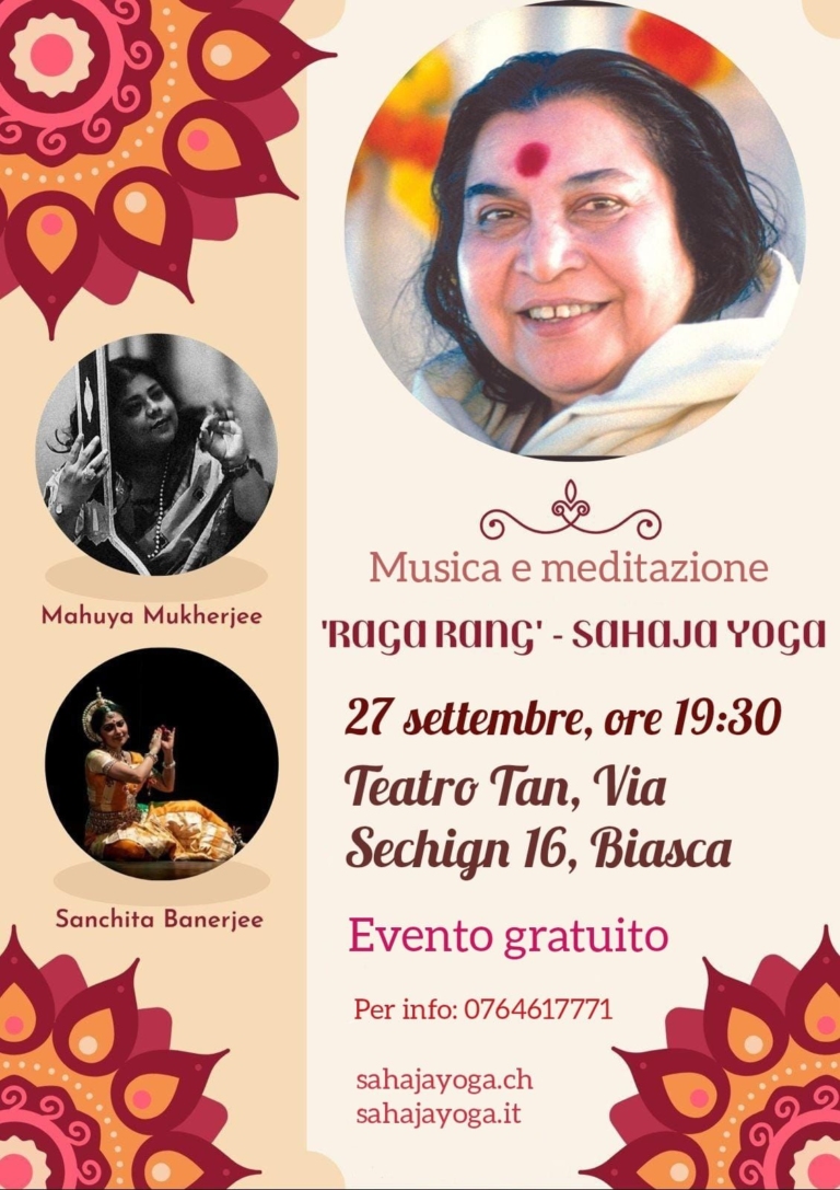 Concerto, Conferenza, In primo piano, In primo piano, Musica, Notizia, Notizia Musica e meditazione – 27 settembre a Biasca 357Views ShareTwitterFacebookGoogle+ Vieni a scoprire la meditazione Sahaj nella musica!27 settembre 2024 alle 19:30Teatro Tan, via Sechign 16, BiascaIngresso gratuito